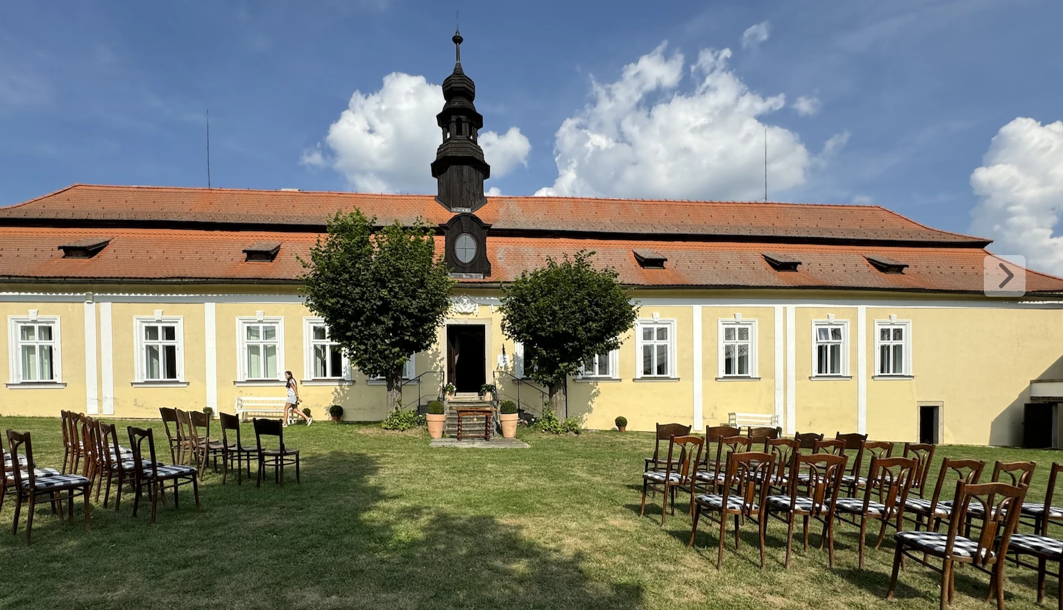Je ale též možné jít deset minut k malému rybníčku, nebo slavit svatbu v našem malém barokním kostele, jen 200 m vzdáleného od dvora a zámečku.