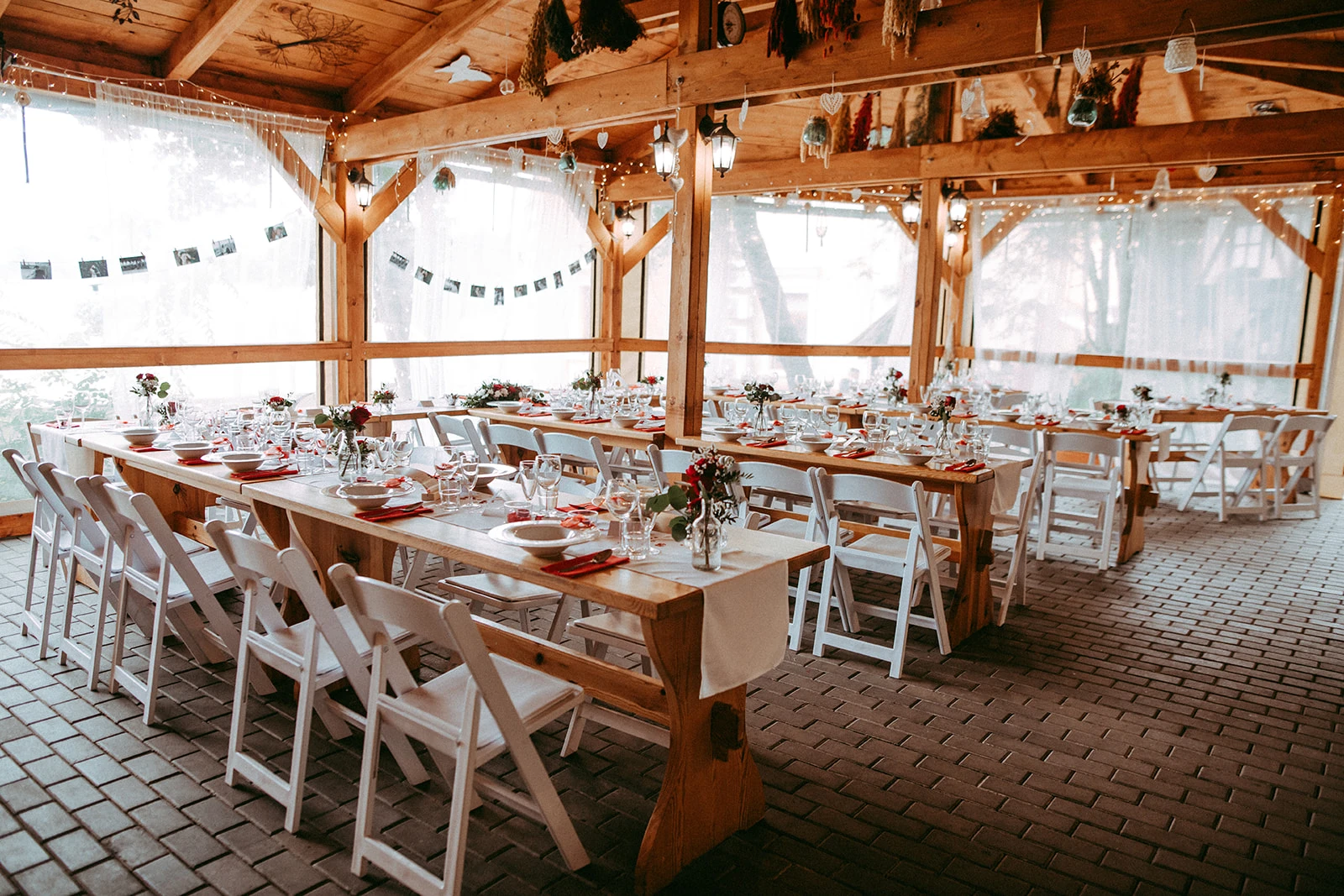 Zařídíme svatební obřad, večeři či oběd u svátečního stolu, krájení dortu i tanec, a to vše na jednom místě. V našich skvěle dispozičně řešených prostorech můžete uspořádat veselku uvnitř i venku.