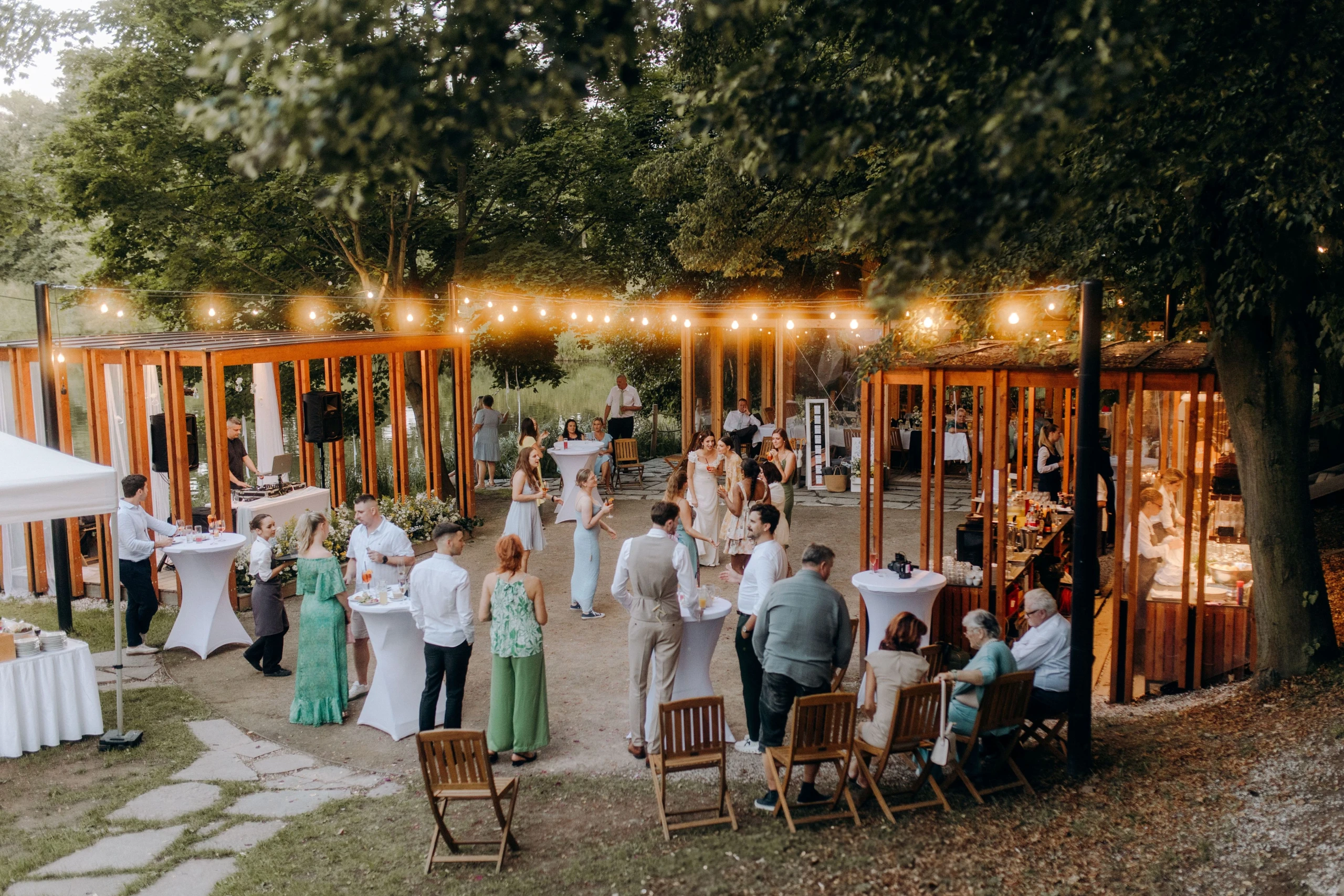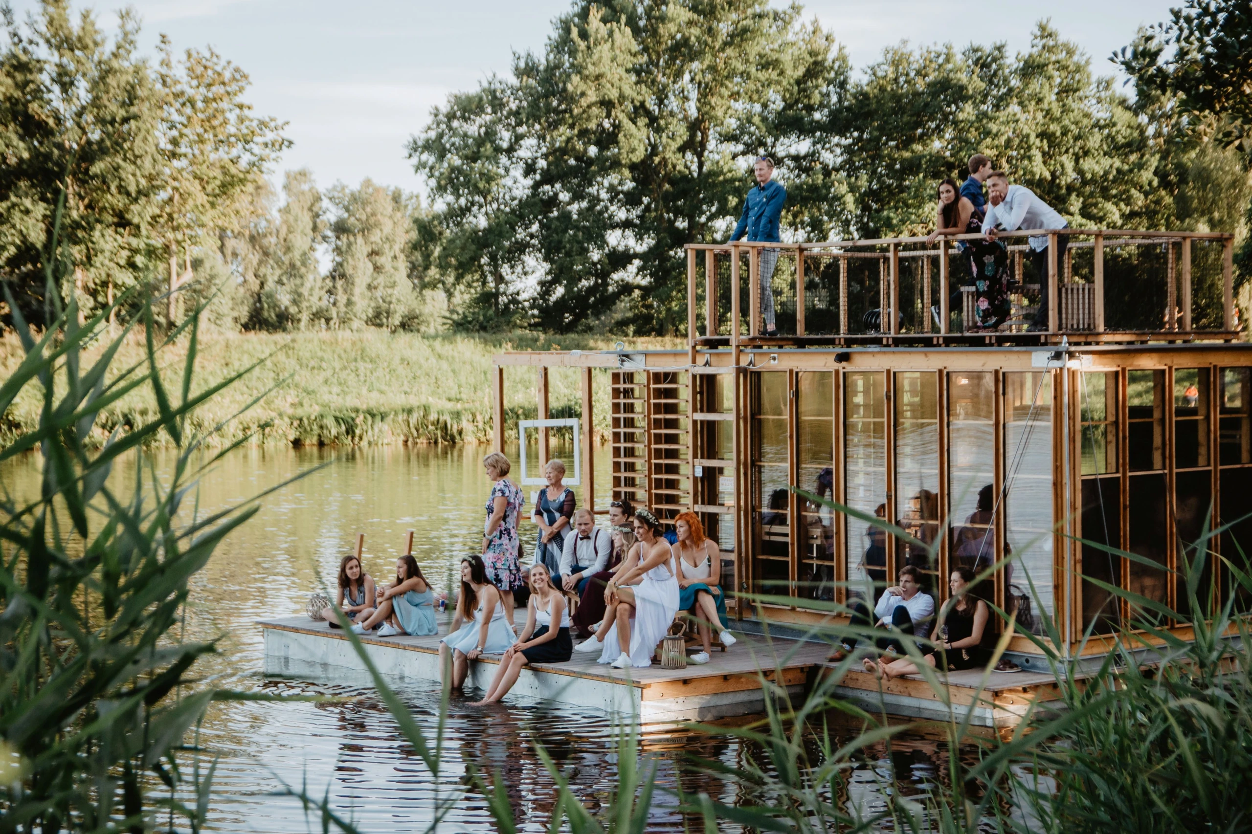 Zátoka řeky Orlice tvoří uzavřenou přírodní oázu, která nabízí dostatek prostoru i soukromí pro vaši svatbu. Rozmanitost areálu poskytuje řadu variant od možnosti uspořádat svatební obřad v kruhu rodiny přímo na řece na unikátním plovoucím mole s altánem až po velkolepou svatební hostinu až pro 120 osob.