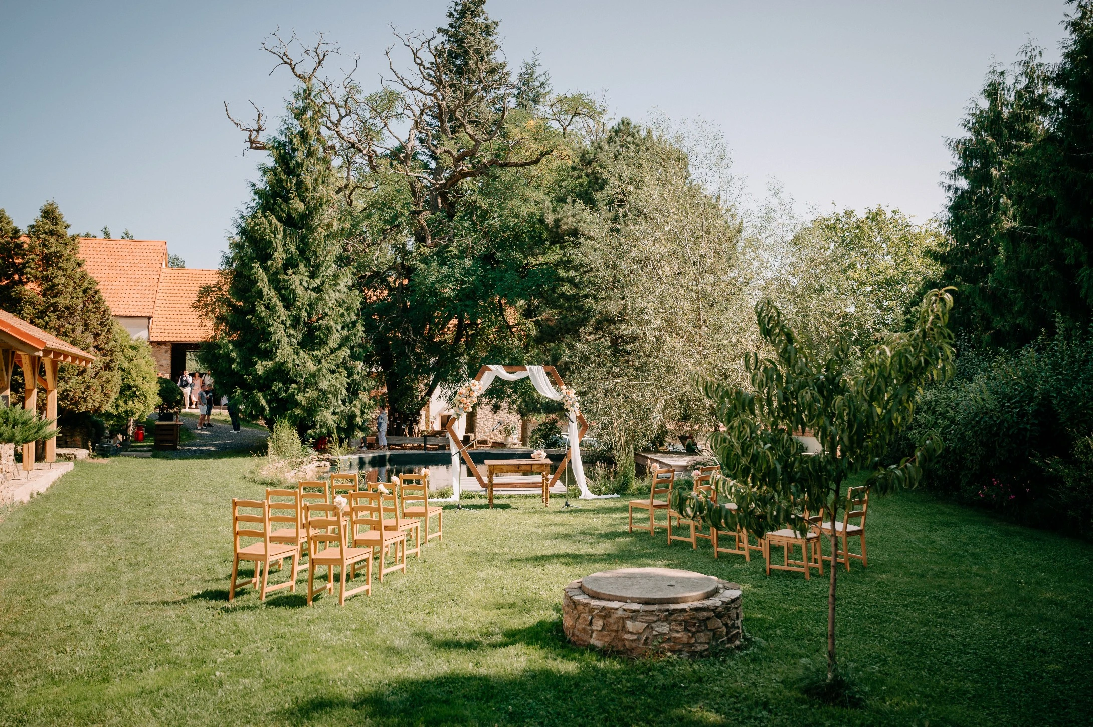 Když máte obřad venku jen pár kroků od ubytování, vznikají ty nejkrásnější svatební příběhy. Váš příběh si zaslouží místo, které mu dá prostor rozvinout se do té nejkrásnější podoby. Tam, kde se potkává příroda a ohniště, dostává večerní oslava úplně jiný rozměr. Zahrada plná květin a zeleně zhmotní vaše romantické snění ve svatební den plný krásy a vůní. Místo, kde je louka a venkov, nabídne svatbu plnou klidu, prostoru a upřímné radosti.